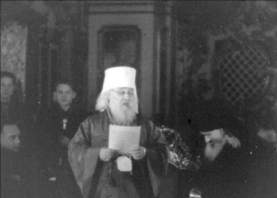 Екзарх України Іоан зачитує учасникам Собору телеграму Патріарха московського