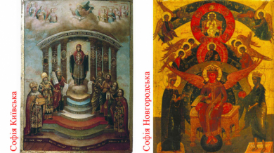 – Маю один дуже наглядний приклад, де легко відстежити такі культурні тенденції. – Андрій Зелінський відкриває на ноутбуці ще один слайд. На сторінці зображено дві ікони – «Софія Київська» та «Софія Новгородська».